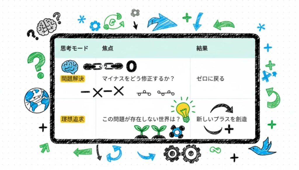 スマホを閉じて、1つの問いについて考える時間を取る。 - 問題を見たら「理想側」も必ず1回考える