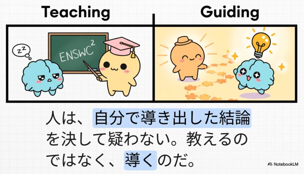 箱の中身(商品や解決策)をすぐに見せてしまえば、「ああ、これね」で終わり、警戒心(抵抗)が生まれるかもしれません。しかし、「箱」だけを見せ、「この箱の中身を知っている人は、みんな成績が上がって幸せになっている」というベネフィットだけを熱心に語ることで、子供(見込客)は早く中身を知りたくてたまらなくなり、箱を開けるのを待ち望む状態になるのです。